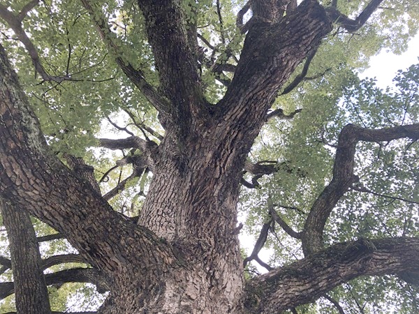 背中を反らして見上げるサイズの立派なご神木を