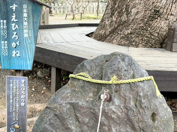 ご神木の手前にあった「すえひろがね」という石は