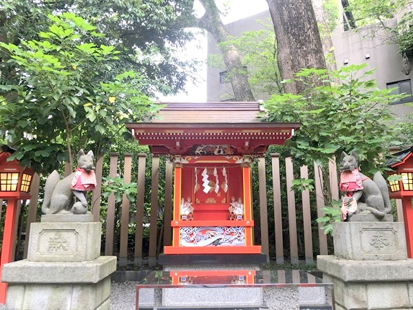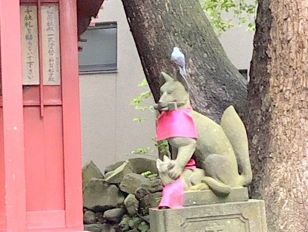 下にいる小さな狛狐が「ん?」って見上げてるみたいw