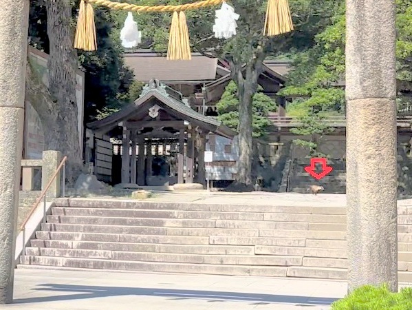 何か動くものが神社の境内を横切って行ったのです。