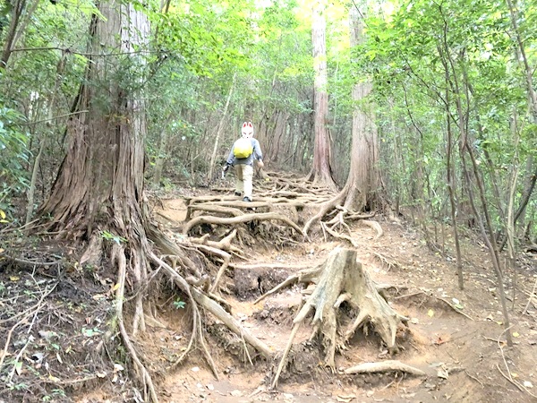 拝殿前から山頂まで片道40分くらいで着きました。