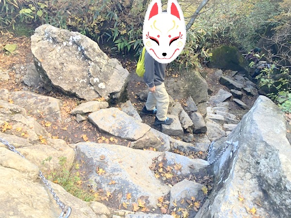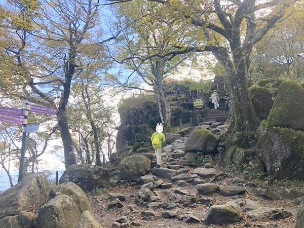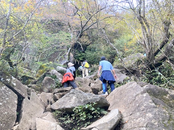 山道を歩いて女体山の山頂、巨石へとまわるのは