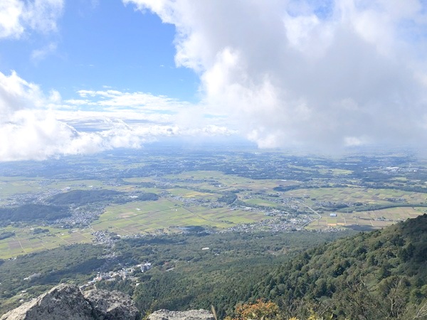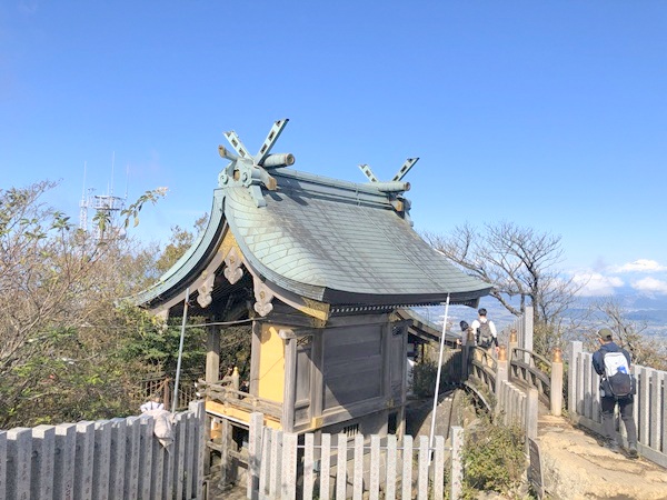 すぐ右下でなにかが白く反射している山が女体山になります。