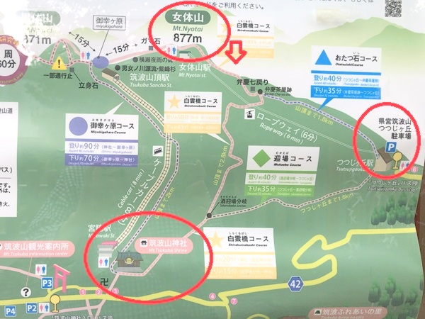 筑波山神社の左にあるケーブルカーで男体山の山頂へ行き